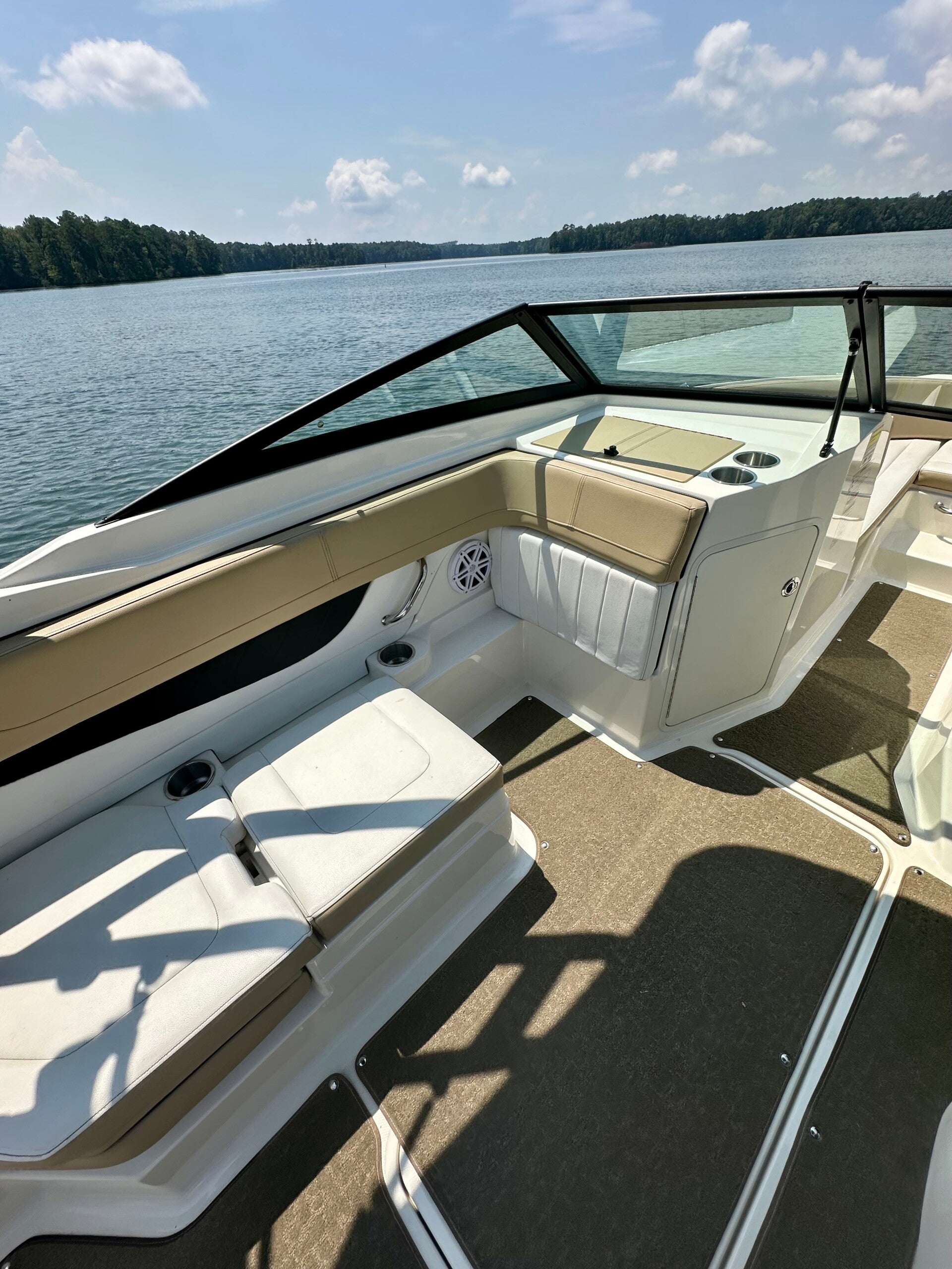• Engine & Performance: Powered by a 4.5L MerCruiser engine, this boat runs strong with only 250 hours and reaches speeds up to 50 MPH.